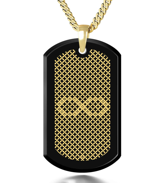 Men’s Dog Tag Necklace Infinity Pendant 24k Gold Inscribed Onyx Stone